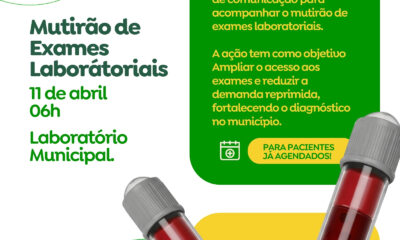 A Prefeitura de Primavera do Leste, por meio da Secretaria Municipal de Saúde, realiza neste sábado (11) um mutirão de exames laboratoriais no Laboratório Municipal, com...