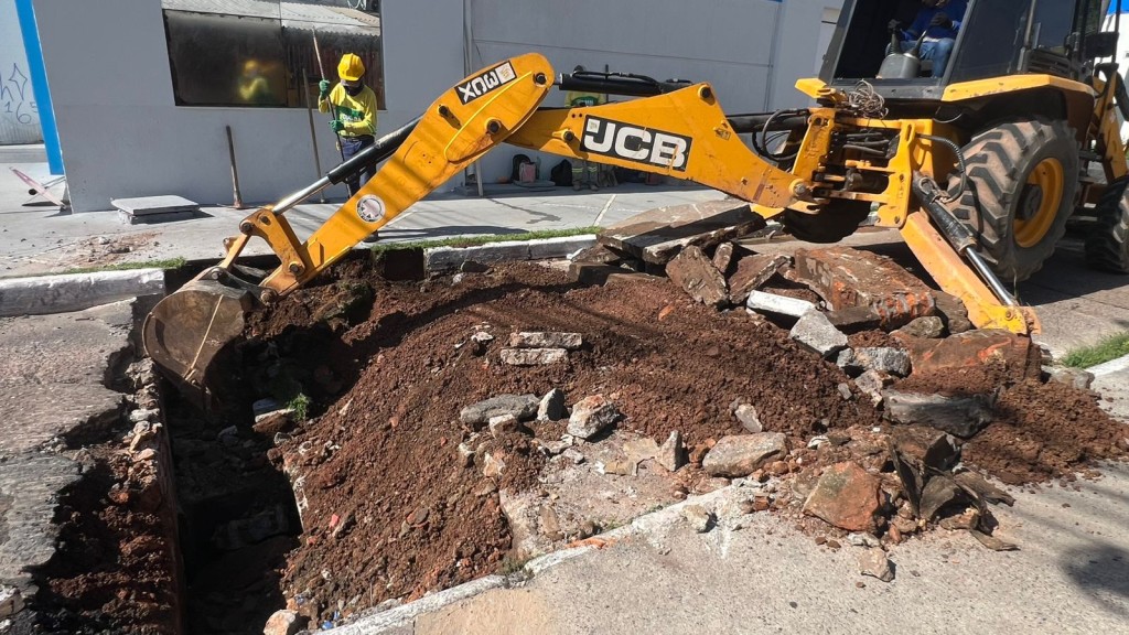 Os trabalhos incluem a abertura de vala para o assentamento de aproximadamente 10 manilhas, que farão a conexão entre as bocas de lobo e a rede existente.