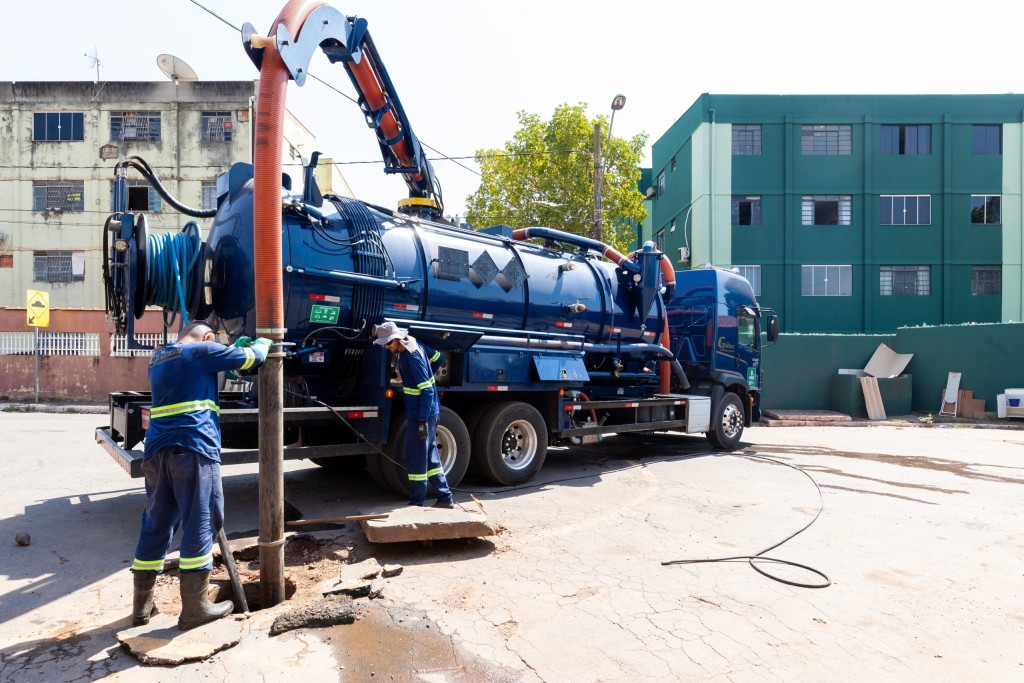 A execução conta com o apoio de caminhão hidrojato, retroescavadeira e caminhão caçamba. O hidrojato realiza a sucção dos materiais acumulados, enquanto o trabalho manual garante a limpeza interna das caixas coletoras. Todo o resíduo retirado, como areia, cascalho, garrafas PET, sacolas plásticas e outros descartes domésticos, tem destinação ambientalmente correta.