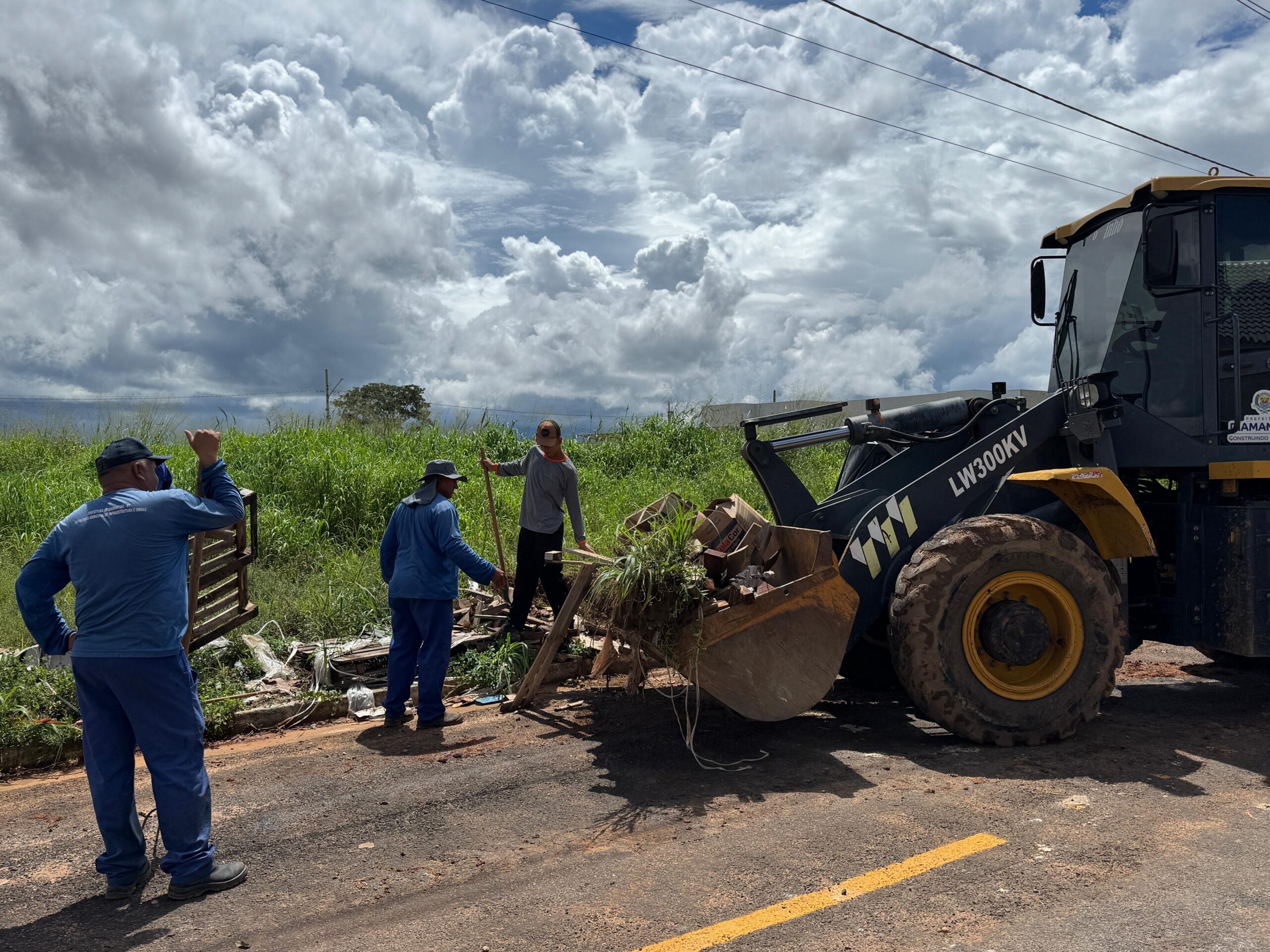 A Prefeitura de Diamantino, por meio da Secretaria Municipal de Infraestrutura e Obras, segue executando os serviços de manutenção urbana no bairro Solar Diamantino. As equipes realizaram a retirada de resíduos de construção civil descartados sobre calçadas, além de galhos e materiais provenientes de roçagem.