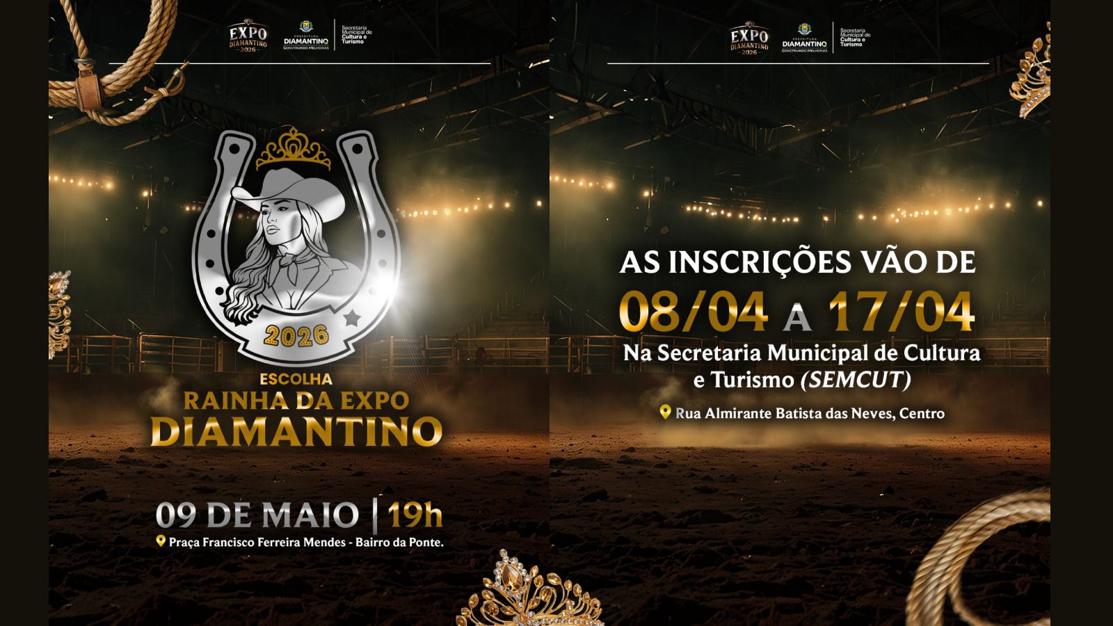 A Prefeitura de Diamantino, por meio da Secretaria Municipal de Cultura e Turismo, anunciou a realização do tradicional concurso da Escolha da Rainha da ExpoDiamantino 2026, evento que abre oficialmente a programação da maior feira do município.