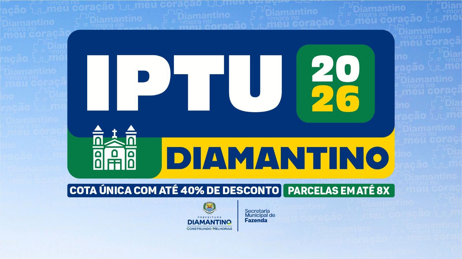 A Prefeitura de Diamantino, por meio da Secretaria Municipal de Fazenda, informa que o IPTU 2026 já está disponível para emissão no site oficial do município, na aba Portal do Contribuinte. Neste ano, o processo está mais prático e acessível, permitindo que o próprio contribuinte realize a emissão do Documento de Arrecadação Municipal (DAM) de forma rápida diretamente pela internet.