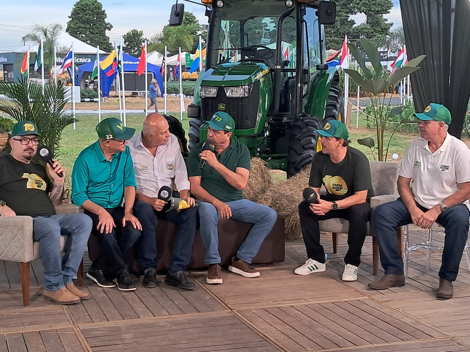 Durante programação realizada na área central da vitrine tecnológica, nesta quarta-feira,11, o prefeito Sérgio Machnic participou de um talk show ao vivo conduzido pelos apresentadores Bola e Carioca, onde abordou temas ligados ao desenvolvimento econômico e estrutural de Primavera do Leste. Durante a entrevista, o prefeito destacou principalmente os investimentos em infraestrutura logística que devem impulsionar a economia regional, com destaque para o terminal ferroviário da Rumo.