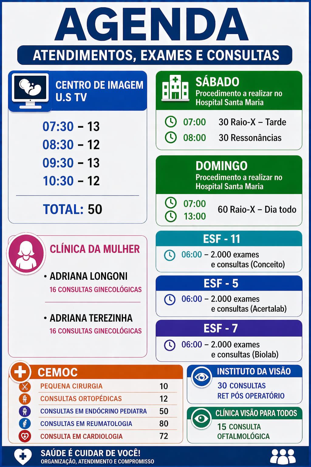- ESF 7 – 06h00: até 2.000 exames e consultas