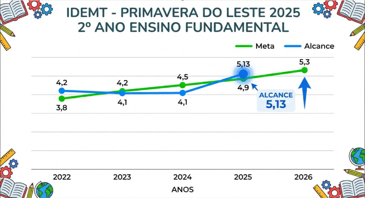 O IDEMT-ALFA, índice que avalia a alfabetização dos alunos do 2º ano do Ensino Fundamental em Mato Grosso, apontou um avanço significativo em Primavera do Leste.