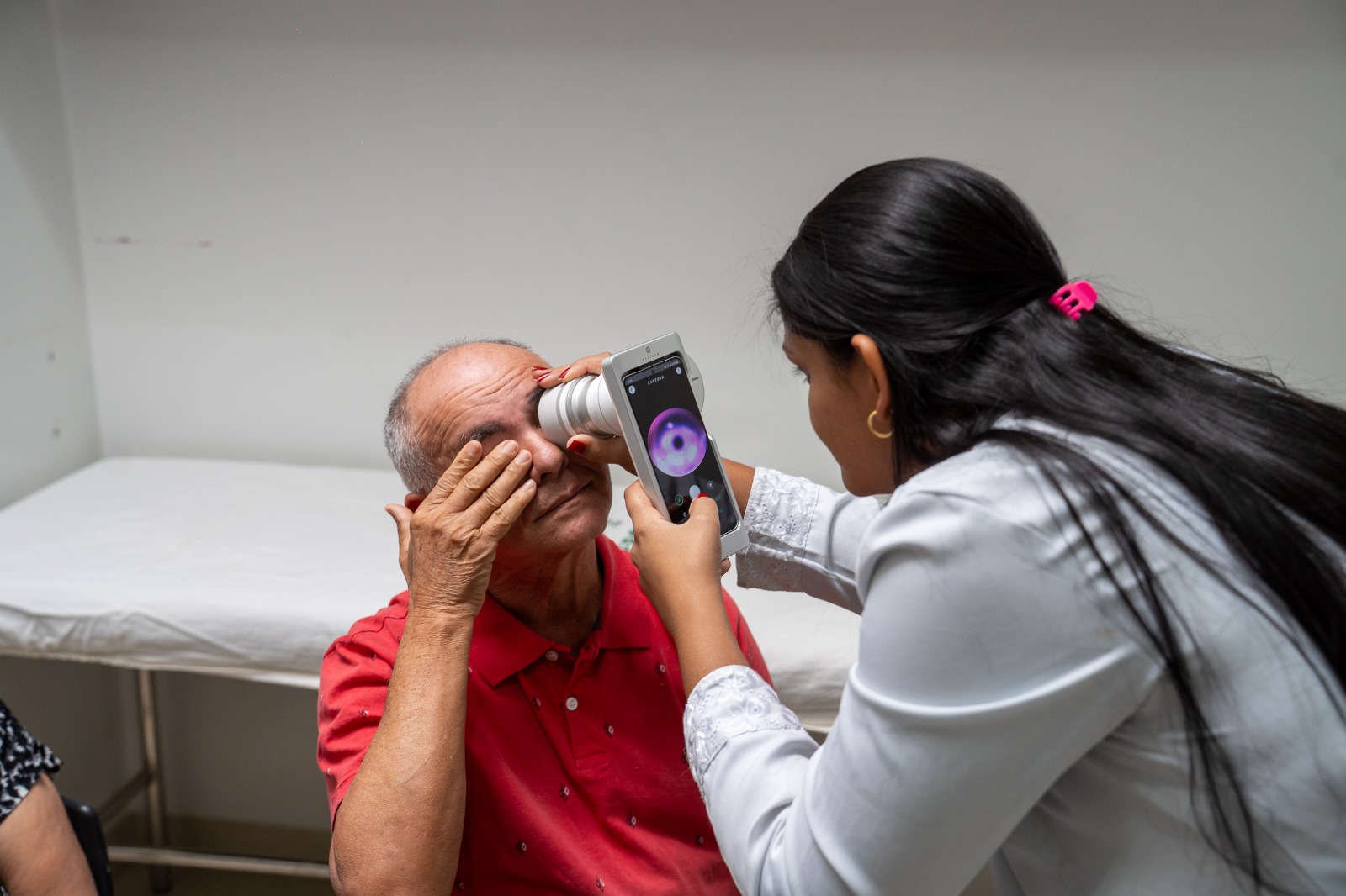 O novo aparelho foi destinado ao Município pelo programa Saúde Digital, da Secretaria de Estado de Saúde (SES-MT). O exame é realizado com um Retinógrafo Portátil Eyer2, tecnologia de alta resolução que captura imagens detalhadas da retina, vasos sanguíneos e nervo óptico.