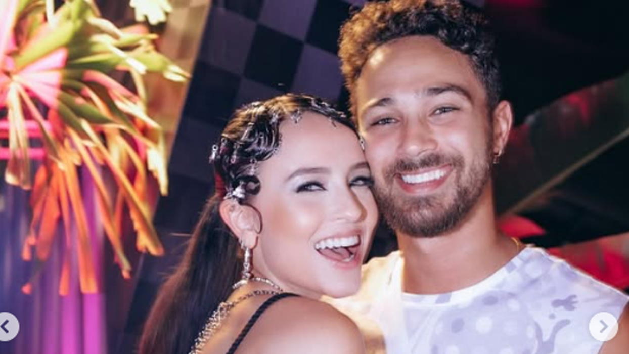 De sainha e top prateados, Larissa Manoela curte carnaval com o marido: ‘ESPECIAL’