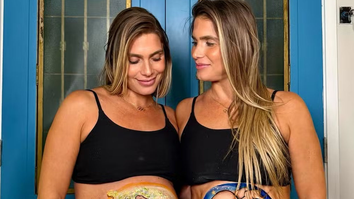 Gêmeas, Bia e Branca Feres exibem barrigas pintadas e celebram gravidez simultânea