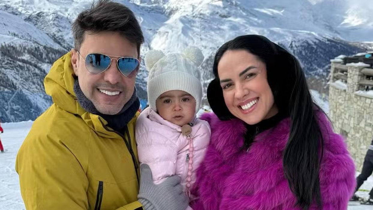 Graciele Lacerda, de 45 anos, publicou nesta quarta-feira (28), fotos em família durante uma viagem de inverno à Suíça. Nos registros, a influenciadora aparece na neve ao lado do marido, Zezé Di Camargo, de 63, e da filha do casal, Clara, de um ano, além de cliques em uma estação de trem.