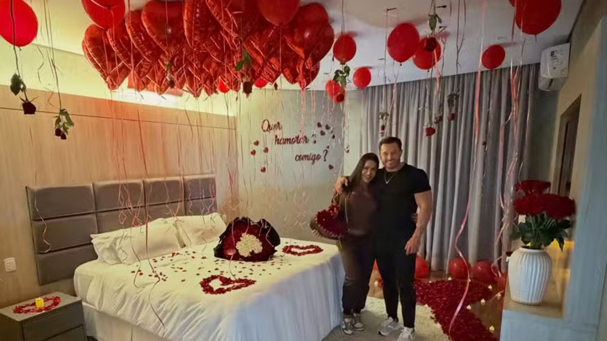 Gracyanne Barbosa, de 42 anos, assumiu oficialmente o namoro com o empresário Gabriel Cardoso, de 35, após ser surpreendida com um pedido romântico no último domingo (25). O empresário preparou uma decoração especial, com flores, pétalas e velas em um quarto, e fez o convite à ex-BBB, que aceitou. “Obviamente, disse sim”, escreveu ela ao compartilhar imagens do momento nas redes sociais.