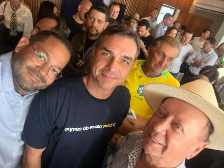 “Agradecer a vinda do nosso Flávio Bolsonaro. Com muita alegria, recebemos vossa excelência aqui… Quero dizer que na vez passada, com o seu pai, foram 77% dos votos [aqui em Sinop], nessa vez vamos avançar mais um pouco e com certeza, com esses maus feitos desse presidente que está aí, nós vamos aumentar essa vantagem”, disparou o prefeito.