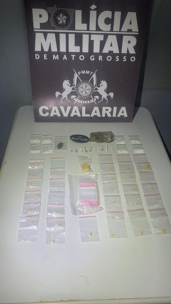 Policiais militares da Cavalaria de Nova Mutum prenderam, nesta terça-feira (27.1), dois homens suspeitos por tráfico ilícito de drogas e apreenderam 73 porções de entorpecentes, entre maconha e pasta base de cocaína, além de outros materiais utilizados para preparo e comercialização dos ilícitos.