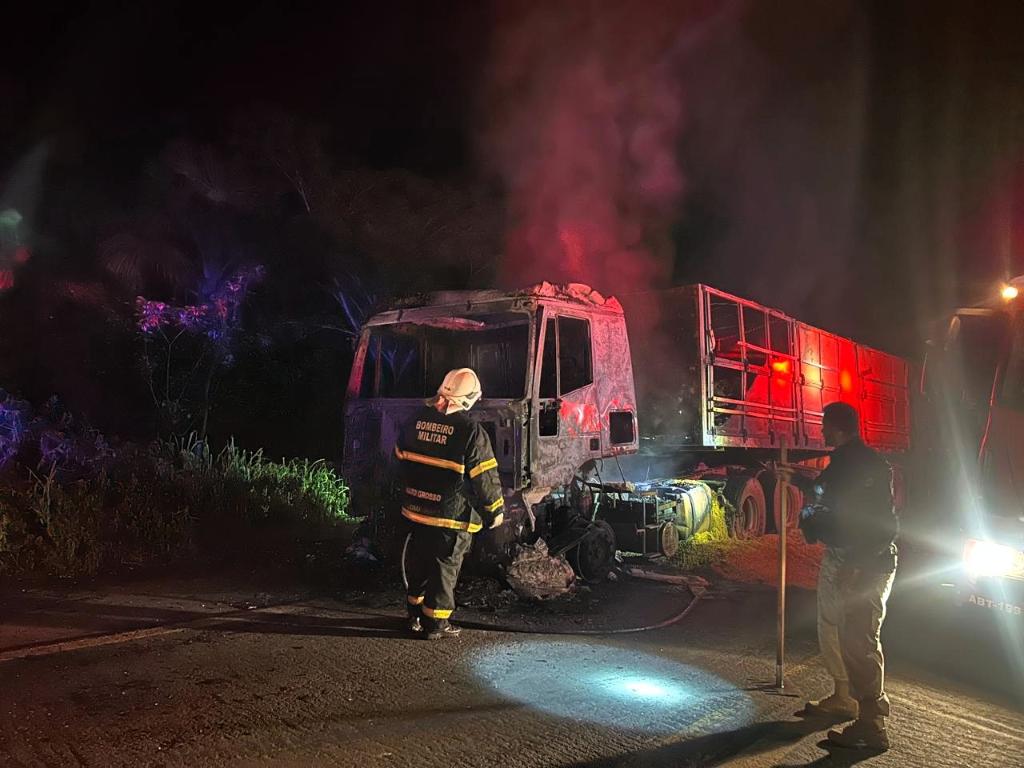 A equipe do 1º Núcleo de Bombeiro Militar (1º NBM) foi acionada por volta das 19h20 e uma viatura foi enviada ao local. Ao chegar, os militares constataram que o fogo já havia consumido o cavalo mecânico e atingia os tanques de combustível, além de parte da carga do primeiro semirreboque.