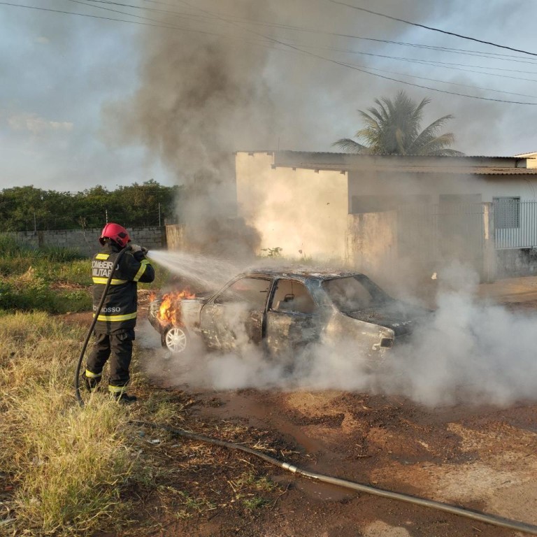 Corpo de Bombeiros combate incêndio em veículo em bairro residencial de Primavera do Leste