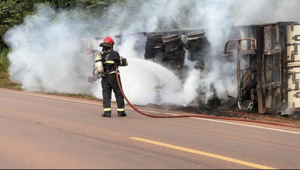 Já no dia anterior, na tarde de sábado (21.2), por volta das 17h10, a equipe do 4º Batalhão de Bombeiro Militar (4º BBM) foi acionada via 193 pela Polícia Rodoviária Federal (PRF) para atendimento a uma ocorrência de incêndio em uma carreta que transportava alimento perecível na BR-163, altura do km 868, no município de Sinop (480 km de Cuiabá).