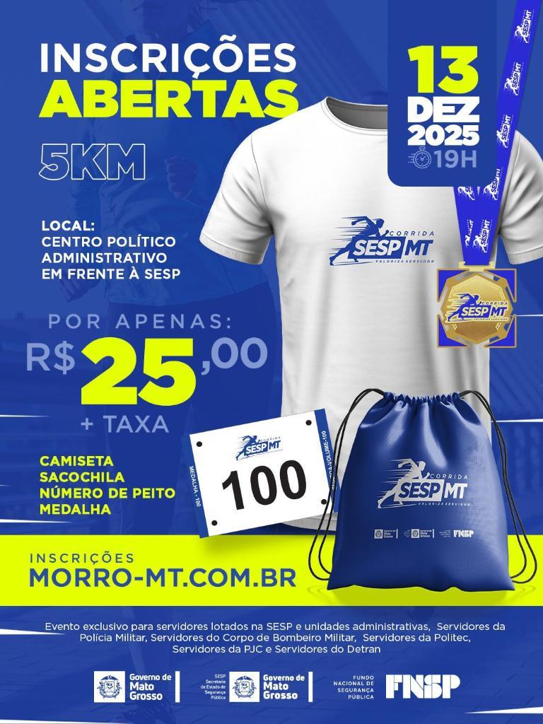 A Secretaria de Segurança Pública realiza nesta quinta-feira (11.12) e sexta-feira (12), a entrega dos kits da 1ª Corrida Sesp-MT, que acontecerá neste fim de semana.