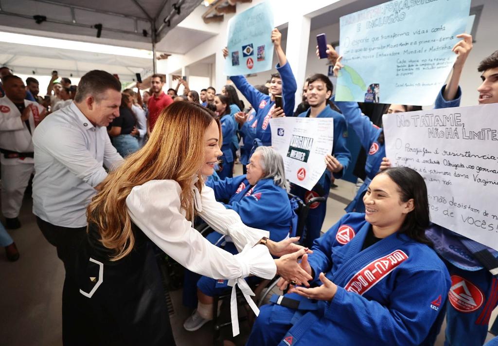 Durante a solenidade na Escola Técnica Estadual, foi entregue um cheque-doação do Aniversário Solidário da primeira-dama Virginia Mendes para a Associação Mato-grossense de Jiu-Jitsu Paradesportivo, e a doação de uma cadeira de rodas especial para Daymon José Gomes dos Reis.