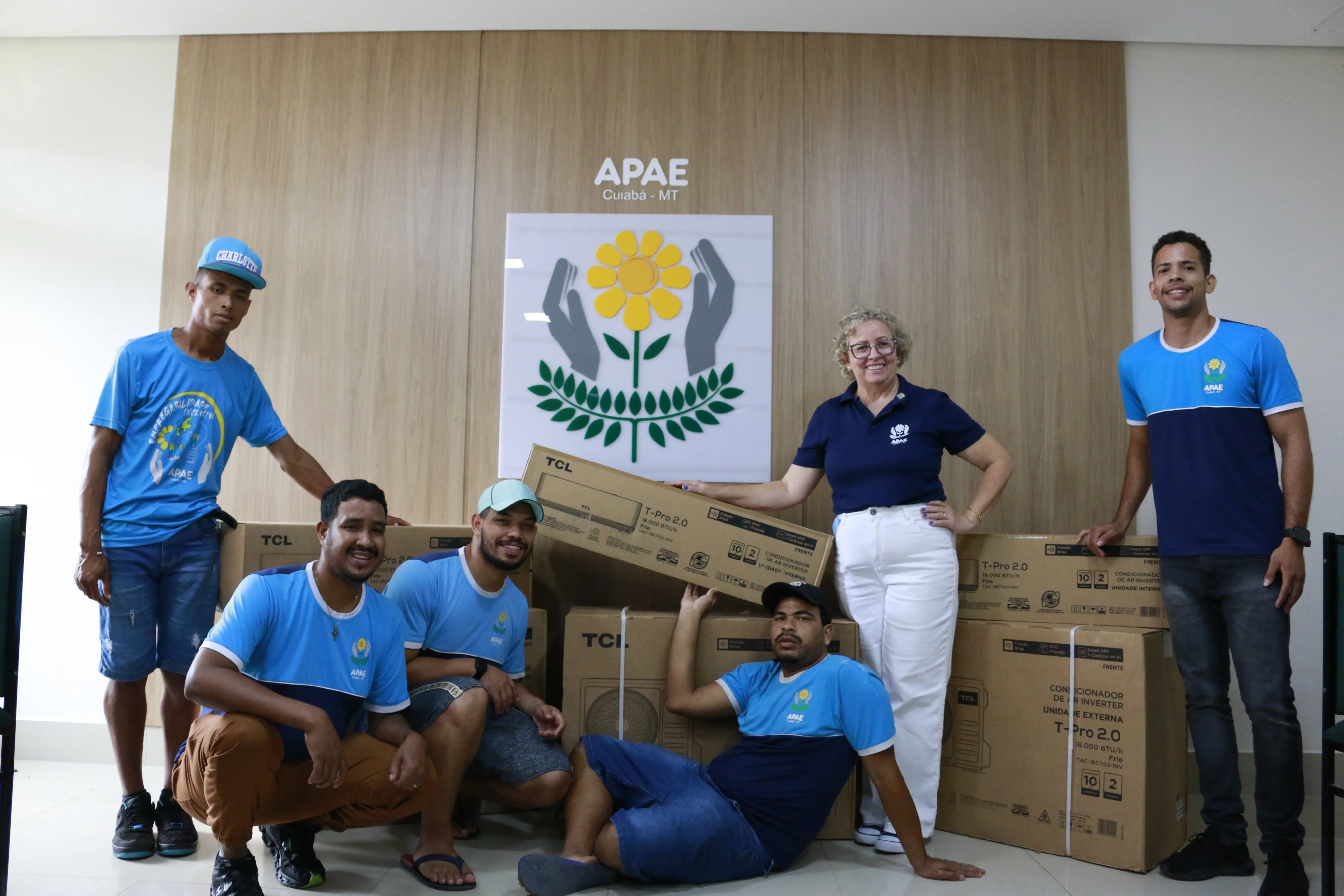 Foram adquiridos 19 aparelhos de 18 mil BTUs, dois de 24 mil BTUs e um de 60 mil BTUs, este destinado ao refeitório da instituição. Com a instalação dos novos equipamentos, a APAE Cuiabá passará a contar com 100% das salas climatizadas, melhoria necessária para o funcionamento das atividades em Cuiabá. Os equipamentos já chegaram e estão sendo instalados na unidade.