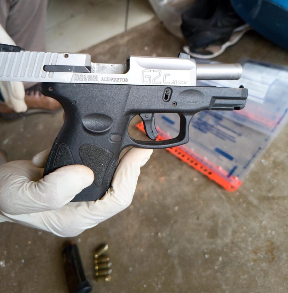 Com ele foram apreendidos uma pistola calibre .40 com cinco munições intactas, uma motocicleta utilizada no furto, celulares, além de recuperada parte dos produtos furtados da conveniência. Na ocasião foi verificado que a arma de fogo possuía registro de furto ocorrido em setembro deste ano.