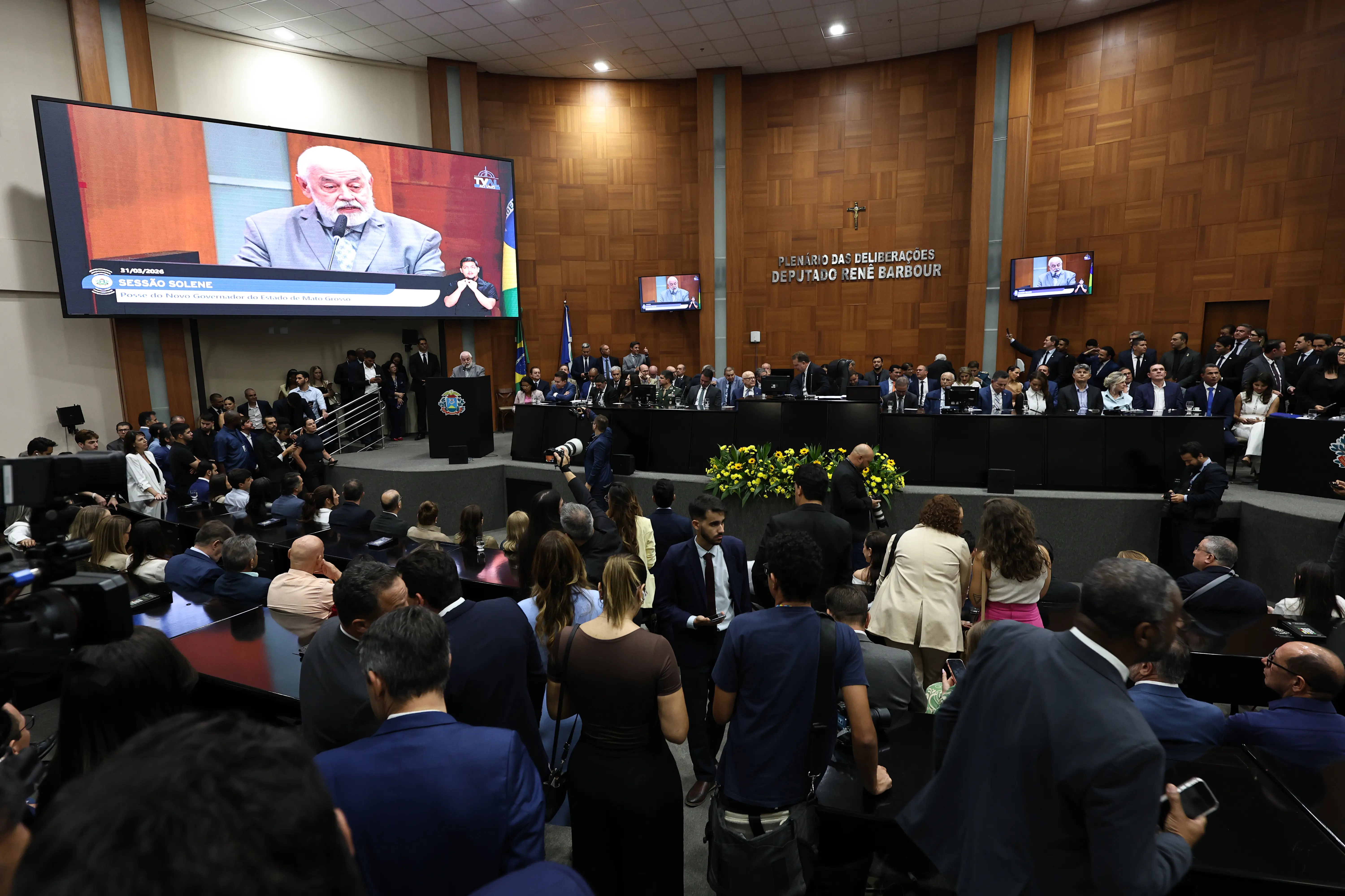 O presidente do Tribunal de Justiça de Mato Grosso (TJMT), desembargador José Zuquim Nogueira, participou, na tarde desta terça-feira (31), da posse do governador de Mato Grosso, Otaviano Pivetta, em sessão solene realizada na Assembleia Legislativa de Mato Grosso (ALMT). O evento marca a continuidade da gestão estadual após a saída de Mauro Mendes, que disputará uma vaga ao Senado na próxima eleição. A cerimônia reuniu autoridades de todo o estado.