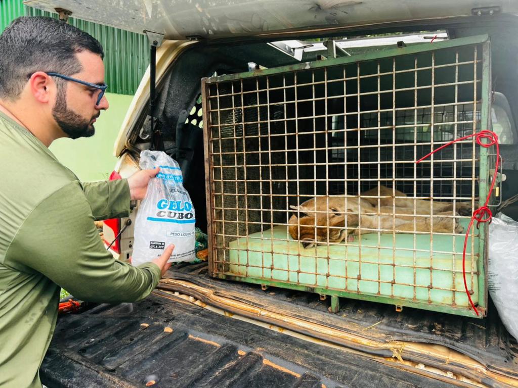Já a onça-parda foi resgatada adulta, com baixo peso e com prováveis traumatismos, na região de Barão de Melgaço. O traslado do animal resgatado foi realizado pela equipe da ONG Onçafari para Cuiabá, onde passou por atendimento na clínica veterinária Anjo da Guarda, conveniada à Sema.