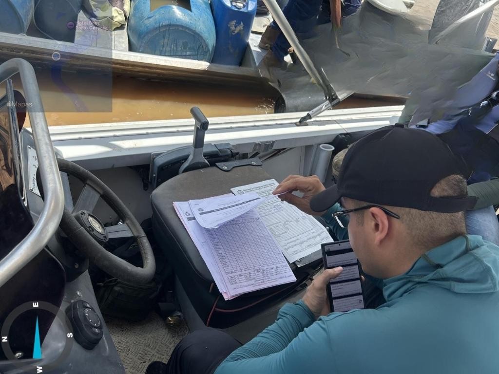 A Guia de Trânsito Animal (GTA) apresentado pelo condutor da embarcação apresentava diversas irregularidades graves, caracterizando fraude ambiental, como GTA emitida em nome de terceiros, distintos do condutor abordado; documento sem assinatura do responsável legal; indicação genérica de procedência como “Bacia do Alto Araguaia” e sem identificação precisa do local de captura; incompatibilidade entre as quantidades declaradas e o material transportado; além de divergências entre os nomes dos supostos proprietários e o número real de iscas.