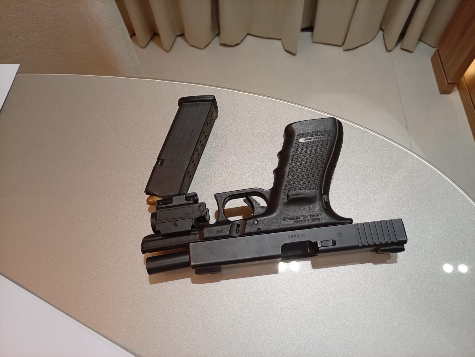 A ação foi deflagrada pela Polícia Civil e cumpriu 34 ordens judiciais. Durante as buscas na casa do empresário, os agentes apreenderam uma pistola Glock 9mm, o que motivou a prisão imediata por porte ilegal de arma.