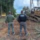 Equipes do Batalhão de Polícia Militar de Proteção Ambiental do 8º Comando Regional apreenderam dois tratores, uma escavadeira hidráulica e diversas toras de madeiras extraídas de...