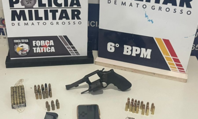 Policiais militares do 6º Batalhão prenderam um homem, de 27 anos, por porte ilegal de arma de fogo, na madrugada deste domingo (1º.2), em Cáceres. Com...