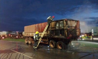 O Corpo de Bombeiros Militar de Mato Grosso (CBMMT) combateu, na noite de quarta-feira (18.2), um incêndio em uma carreta carregada com soja no km 16...