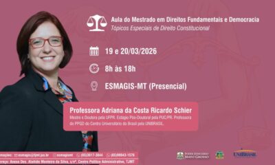 Nesta quinta e sexta-feira (19 e 20 de março) será realizado mais um módulo referente às atividades acadêmicas do programa de “Mestrado em Direitos Fundamentais e...