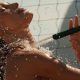 Yasmin Brunet compartilhou com os fãs no Instagram uma série de cliques em que toma um banho de mangueira na praia do Leblon, na Zona Sul...