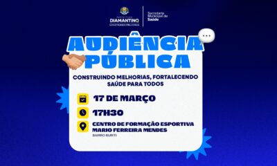 A Prefeitura de Diamantino, por meio da Secretaria Municipal de Saúde, realizará no dia 17 de março de 2026, às 17h30, a audiência pública “Construindo Melhorias,...