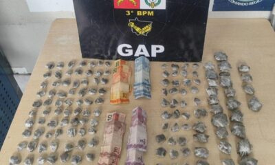Policiais militares do Grupo de Apoio (GAP) do 3º Batalhão prenderam um homem, de 27 anos, por tráfico ilícito de drogas, na manhã desta quarta-feira (25.3),...