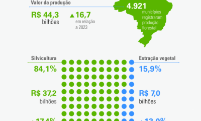 A produção florestal brasileira alcançou em 2024 o maior valor da série histórica, somando R$ 44,3 bilhões, um avanço de 16,7% em relação ao ano anterior,...