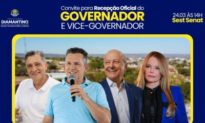 A Prefeitura de Diamantino, por meio do prefeito Chico Mendes, convida toda a comunidade diamantinense para a recepção oficial do governador Mauro Mendes, da primeira-dama Virginia...